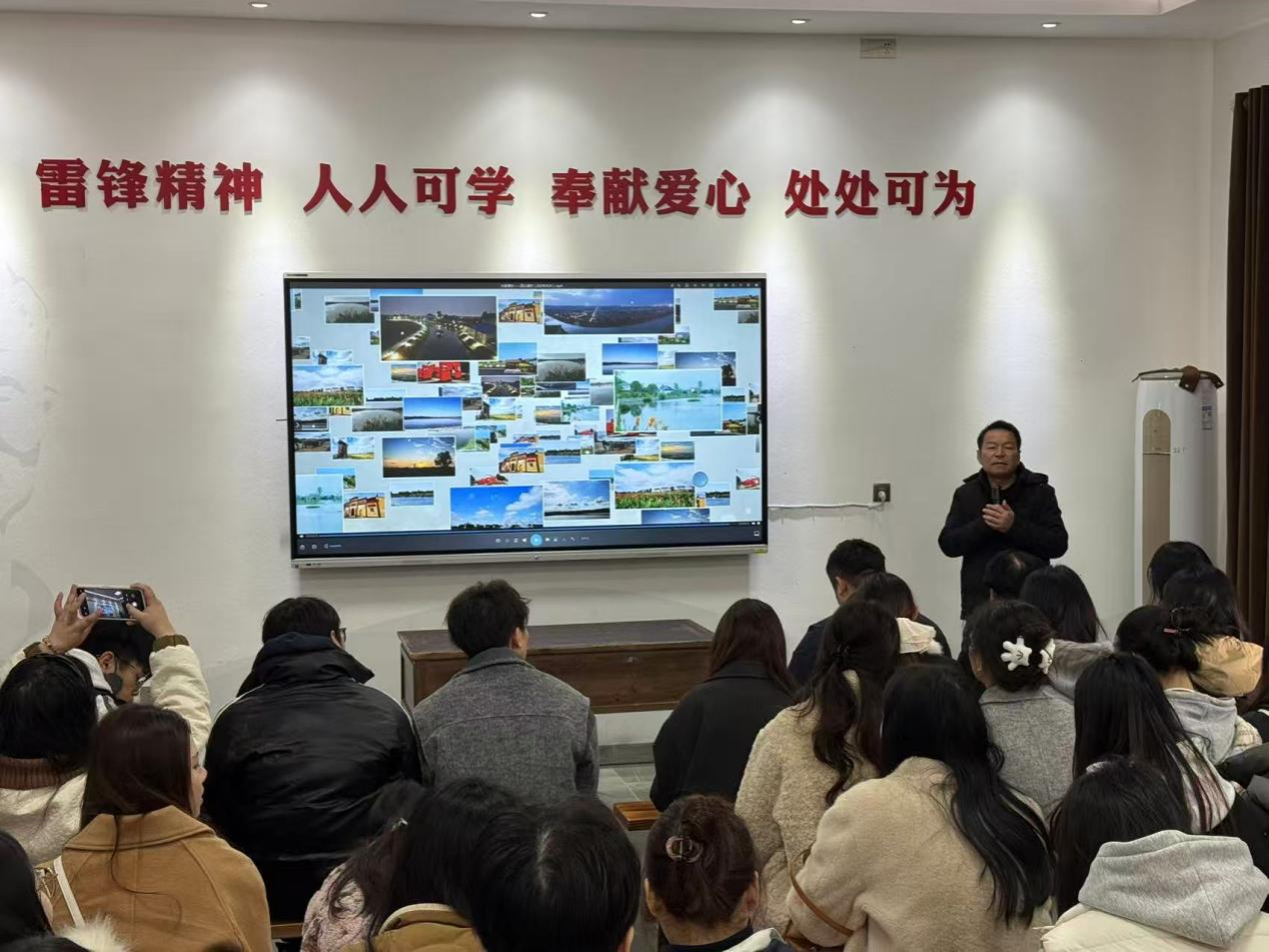 2025年12月18日下午,湖南师范大学政治与公共管理学院副教授谭卫华带领25级社会工作硕士研究生一行45人,赴望城区乌山街道团山湖村开展参访学习,仰岳楼家谱馆杨岳萍、杨印文两位老师受邀同行指导。师生团队沉浸式探访这座“雷锋精神发源地”,实地解码全国文明村镇的治理密码,亲身感受乡村振兴的蓬勃活力。