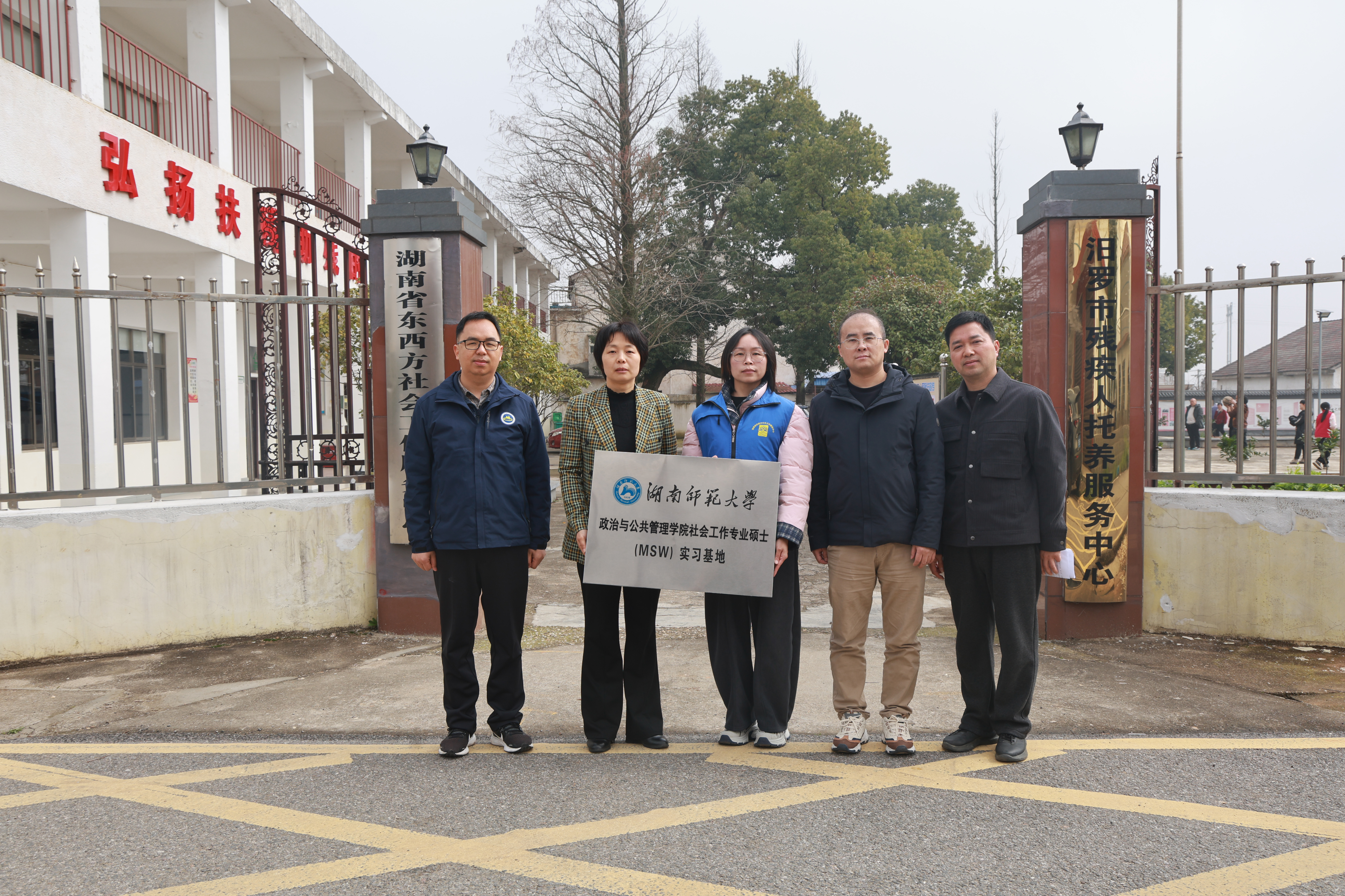 2026年3月10日上午,湖南师范大学社会工作专业硕士实习实践基地授牌仪式,在汨罗市湖南省东西方社会工作服务中心顺利举行。湖南师范大学政治与公共管理学院副院长苏静、副教授谷玉良,汨罗市社会工作部副部长何祥亮,湖南省东西方社会工作服务中心总干事邹雯等出席仪式。