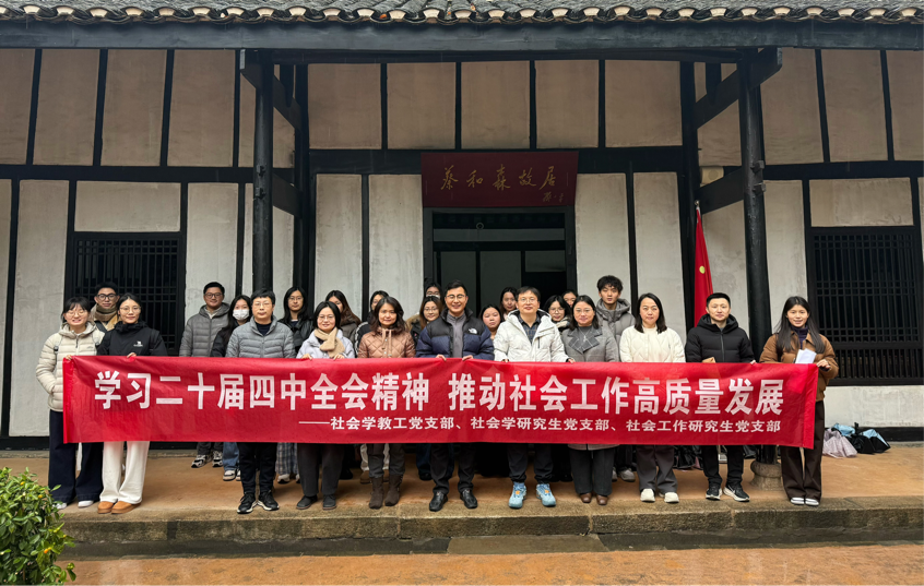 为深入学习贯彻党的二十届四中全会及“十五五”规划建议精神,从红色历史中汲取奋进力量,2025年12月24日,湖南师范大学政治与公共管理学院社会学系教工党支部、硕士生社会学学科党支部、硕士生社会工作学科党支部联合赴新民学会旧址开展主题党日活动,在红色地标中感悟初心使命,以全会精神指引师生参与社会治理、服务民生的实践方向。